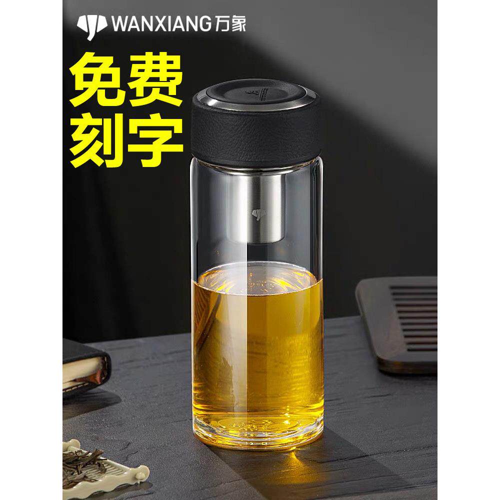 万象玻璃杯夏男女单层大容量防漏便携水杯圆形直身耐热泡茶杯刻字