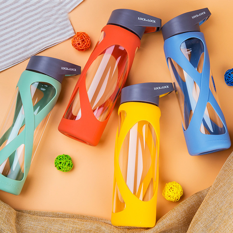 乐扣乐扣水杯耐热玻璃杯创意便携防漏随手杯男女无色透明圆形防烫