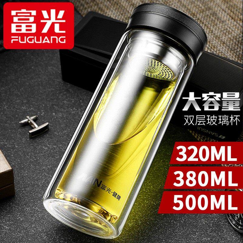 富光双层玻璃杯男女士商务单层便携滤网办公车载带盖防漏茶水杯子