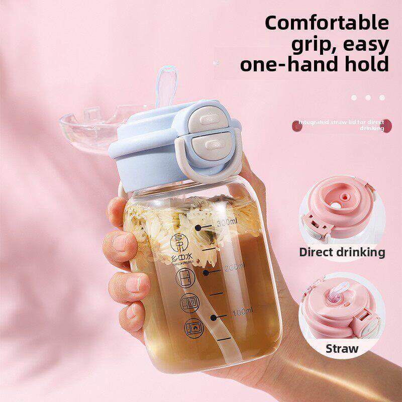 学生双饮玻璃杯女生高颜值水杯便携防漏创意可爱少女儿童吸管杯子