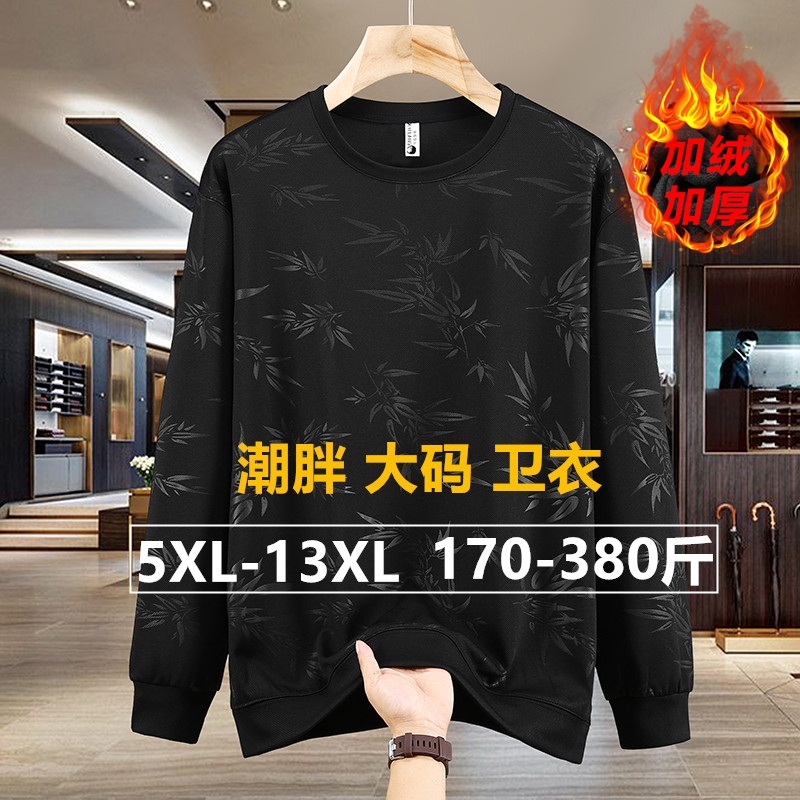 380斤春秋新款百搭卫衣男加肥加大码胖子加绒上衣国风宽松长袖T恤