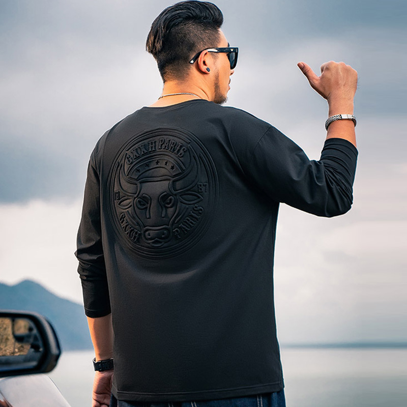200斤7X胖子男装加肥加大码男长袖T恤立体压花宽松休闲秋衣打底衫