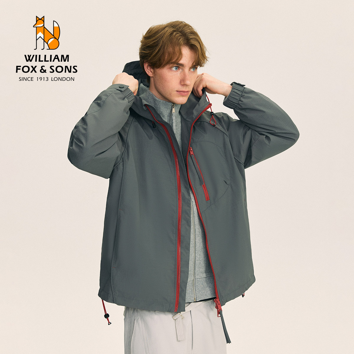 【限时清仓】秋季高密度提花防水撞色机能风连帽仿冲锋外套夹克男