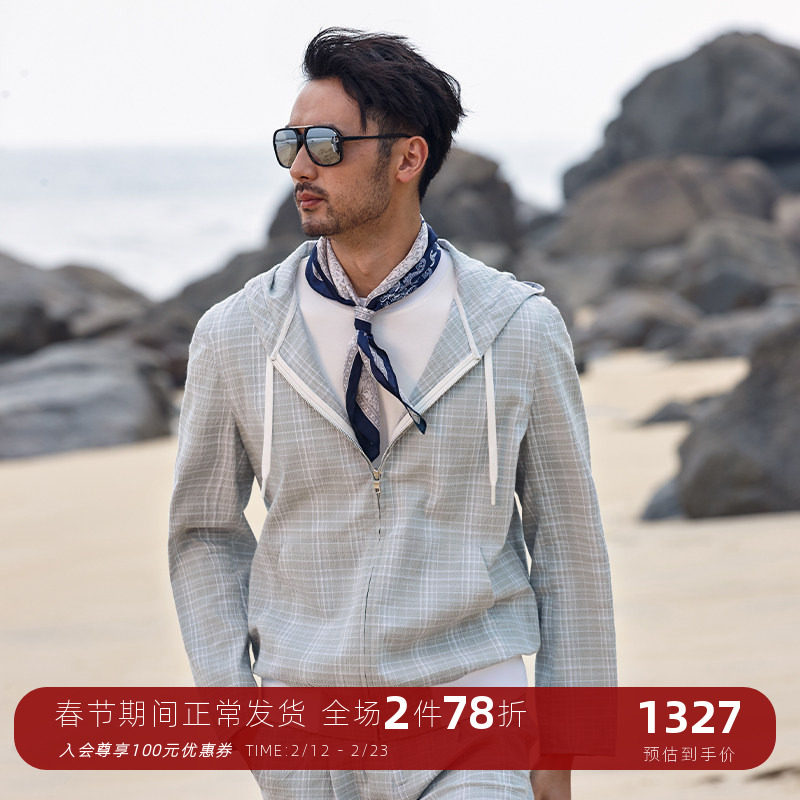 【意大利进口面料】东博利尼秋季连帽夹克男士泡泡纱格子休闲外套