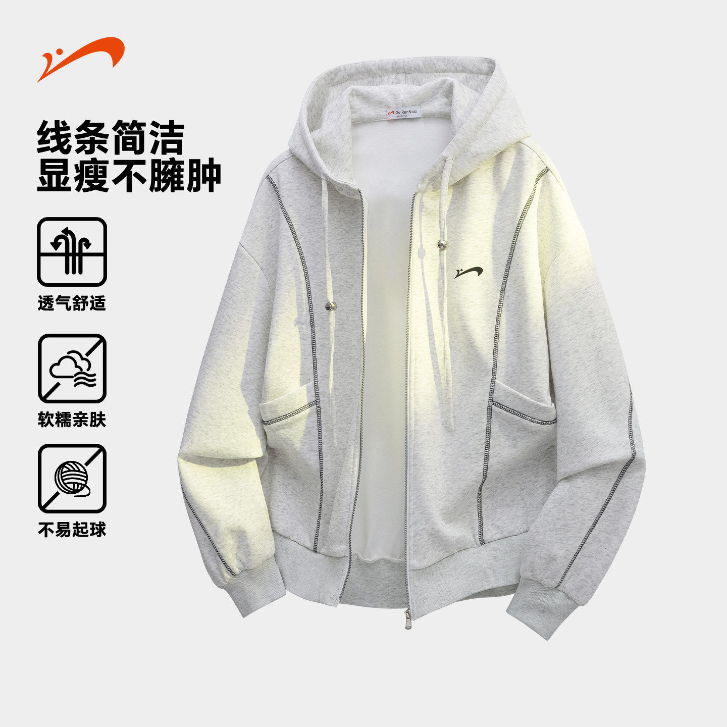 秋季拉链开衫外套男新款宽松卫衣百搭上衣连帽高品质耐穿大码夹克