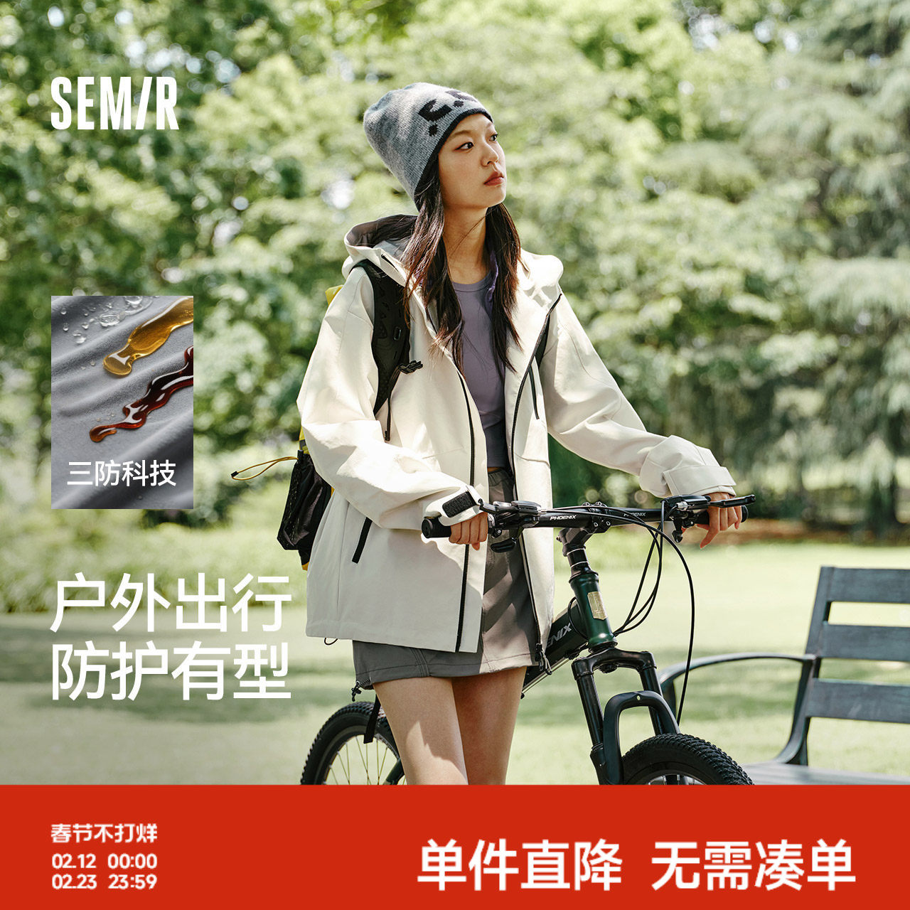 森马户外登山三防外套男2025秋季款连帽上衣徒步露营男女同款夹克
