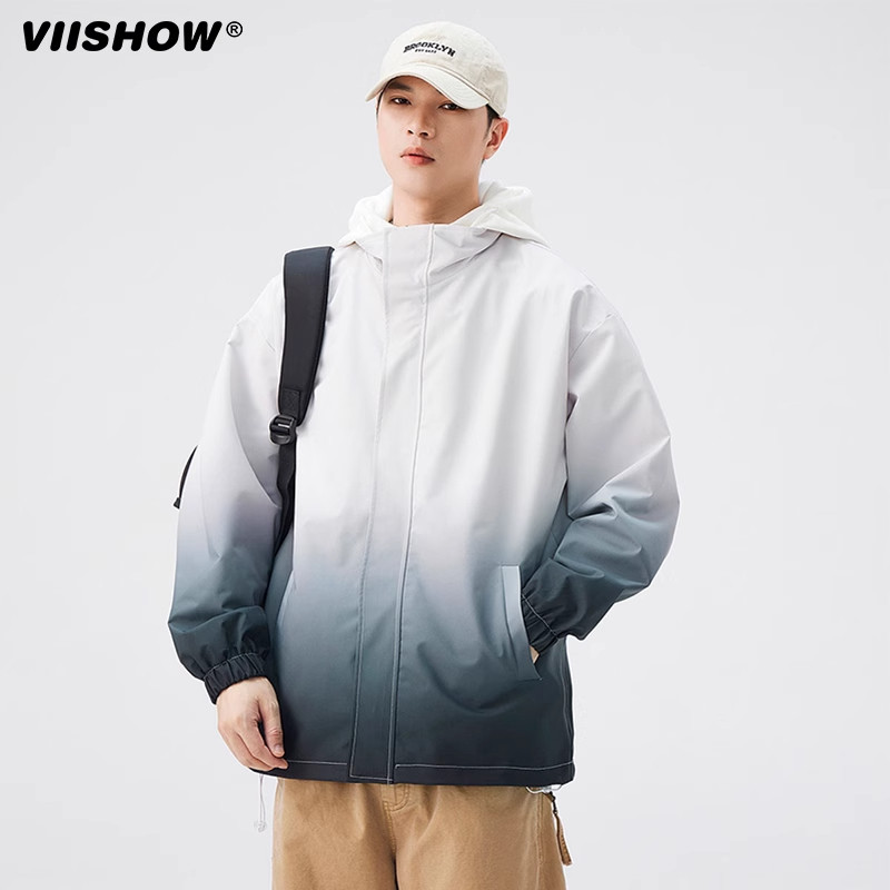 VIISHOW高级感渐变色春秋季连帽夹克男生潮流宽松百搭户外冲锋衣
