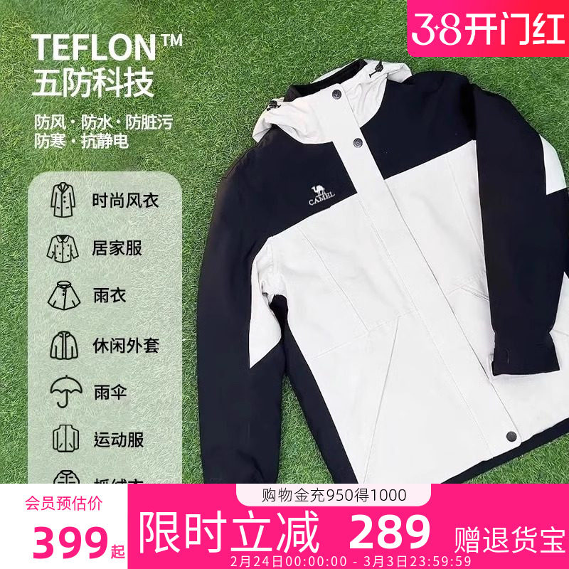 骆驼女装冲锋衣男女同款2026新款三合一防水外套官方旗舰店正品