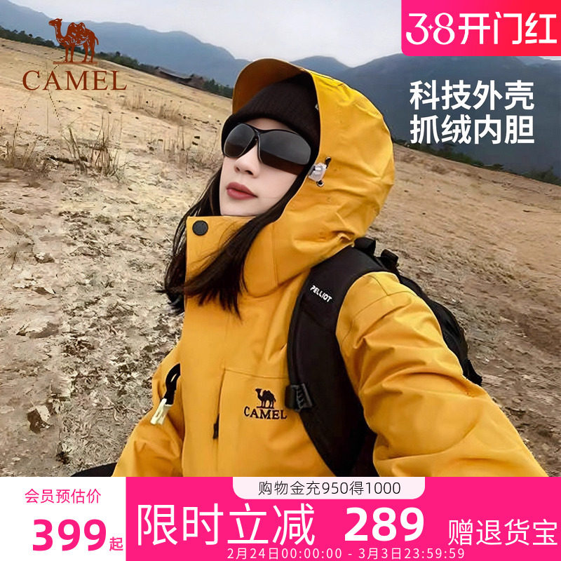 骆驼女装3514冲锋衣男女款三合一防风防水登山外套官方旗舰店正品