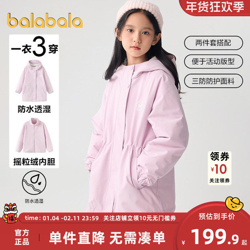 巴拉巴拉女童棉服可拆卸三合一冲锋衣外套冬装新款童装儿童棉服厚