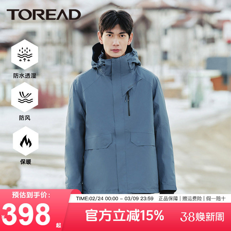 探路者冲锋衣男三合一秋冬户外羽绒内胆防风防水保暖登山服外套女