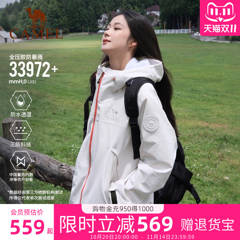 骆驼女装运动冲锋衣男女款三合一防风防水百搭登山服外套官方正品