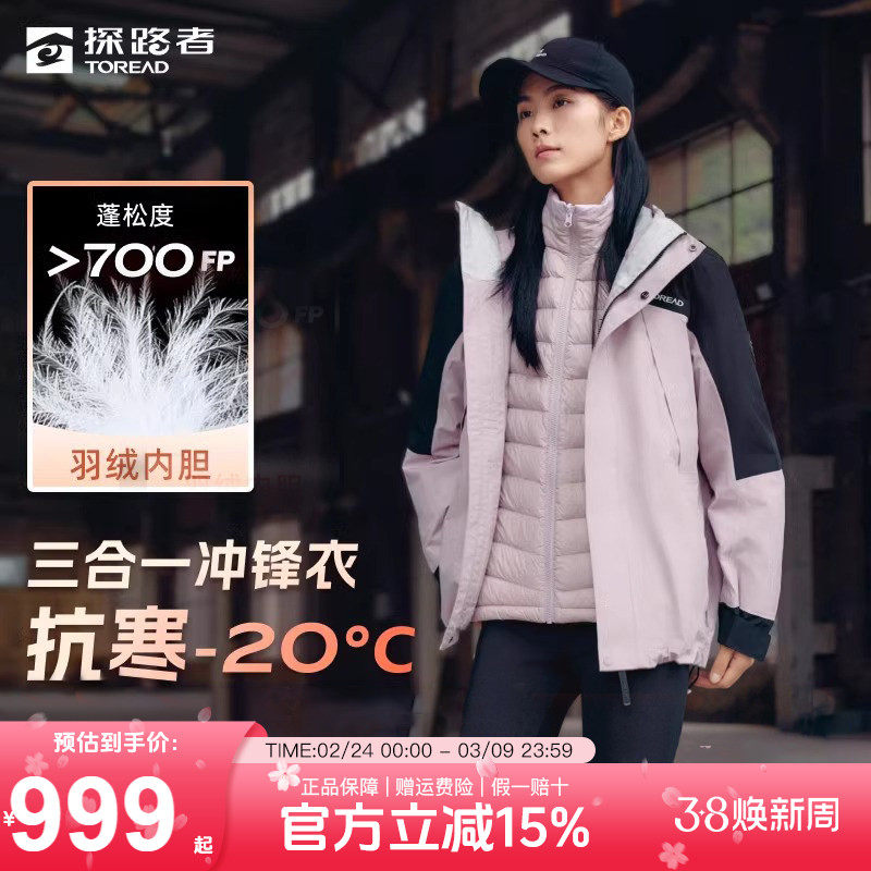 明星同款【朱雀抓绒冲锋衣】拓路者三合一outdoor防风团购外套女