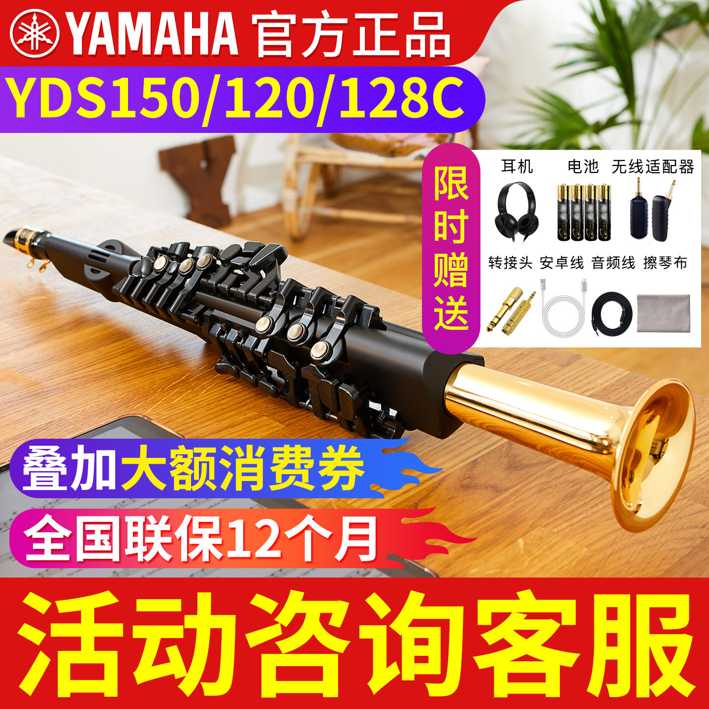 雅马哈电吹管yds150/120/128C电子萨克斯乐器大全初学高音/次中音