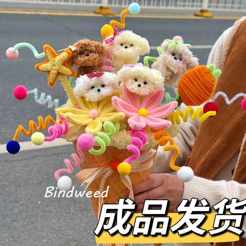 圣诞节礼物女生线条小狗玩偶花束毛绒卡通公仔创意生日礼物送闺蜜
