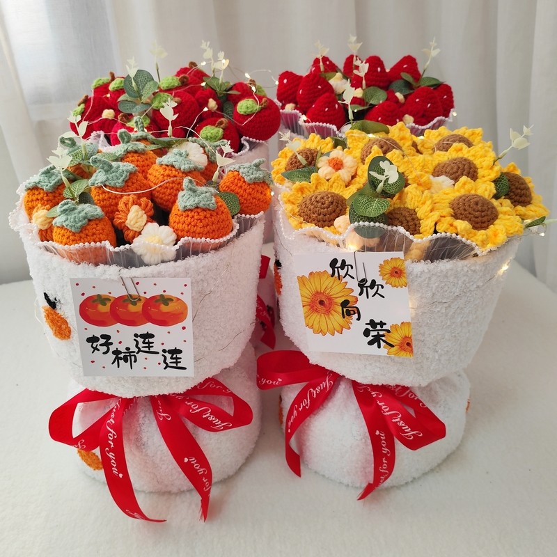手工针织水果花束创意卡通花束送女友生日毕业结婚乔迁圣诞节礼物
