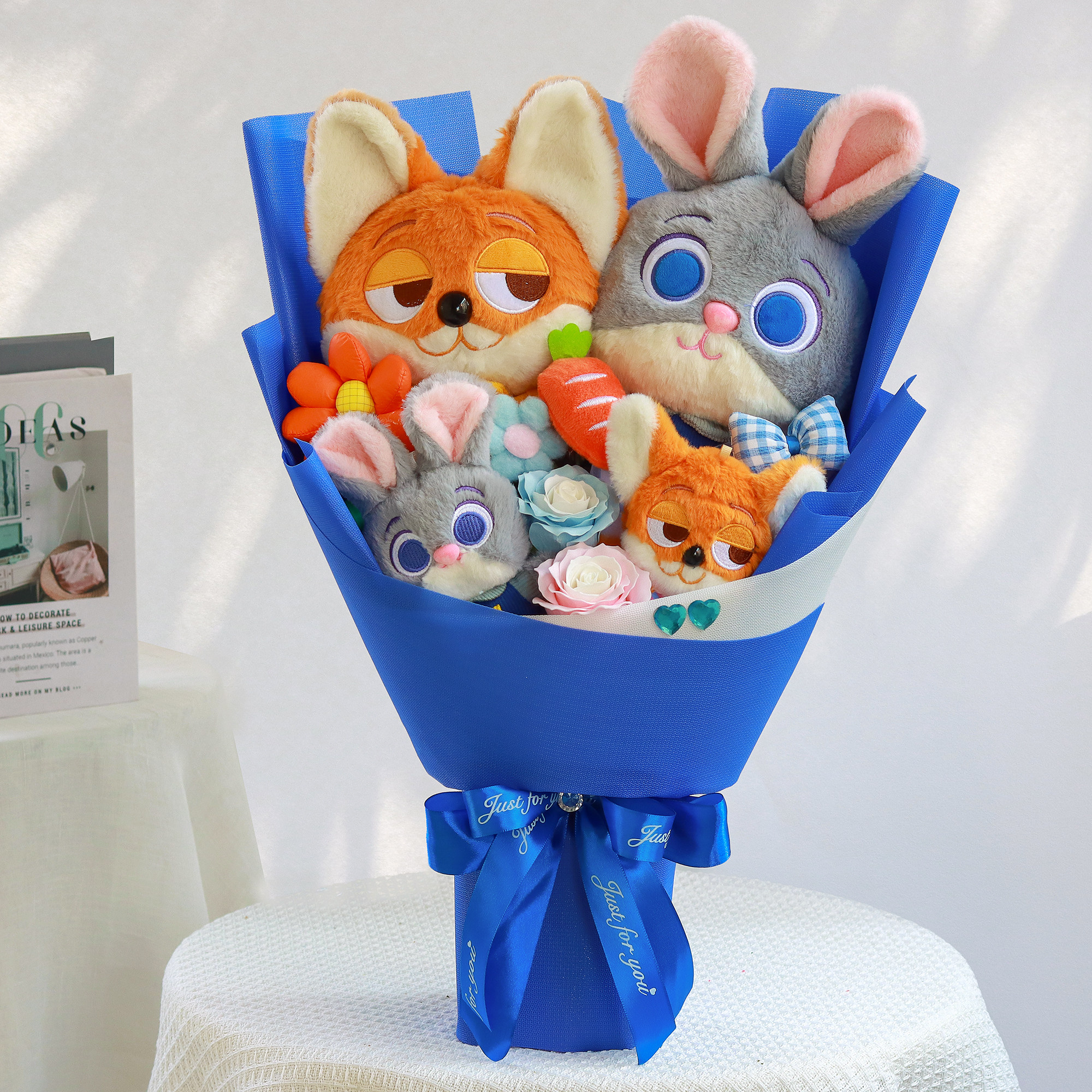 疯狂动物城朱迪尼克卡通花束毛绒玩偶公仔花送女生闺蜜情人节礼物