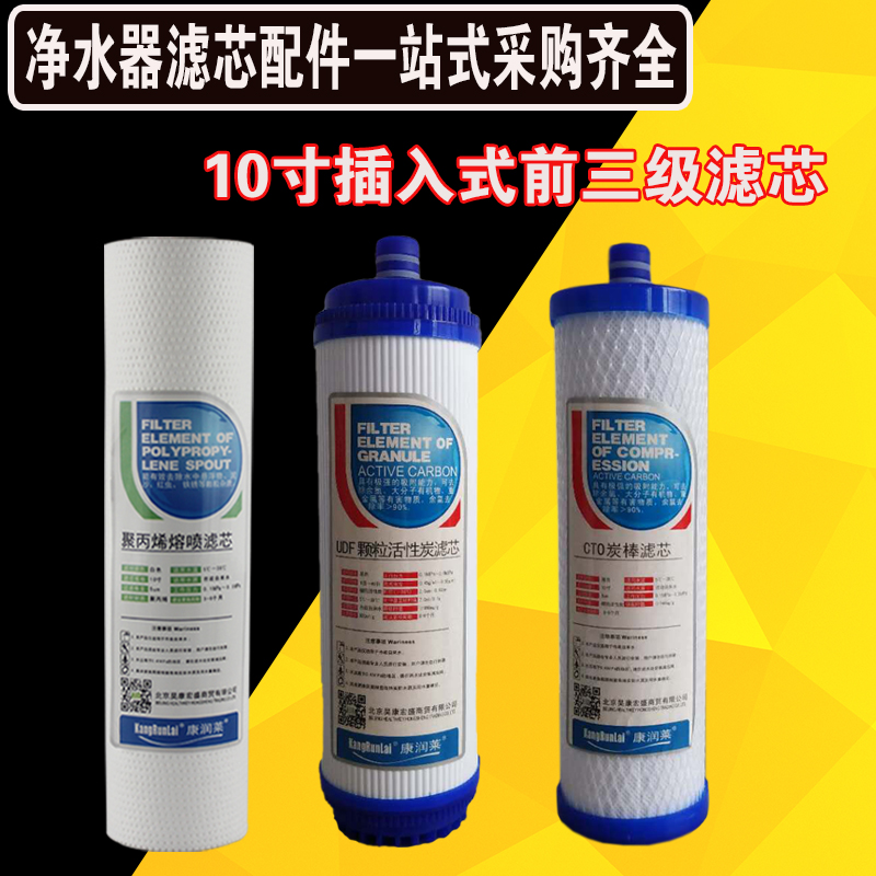 10寸通用滤芯净水器前三级套装PP棉压缩碳颗粒炭家用纯水机配件