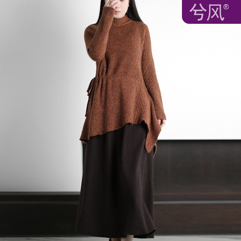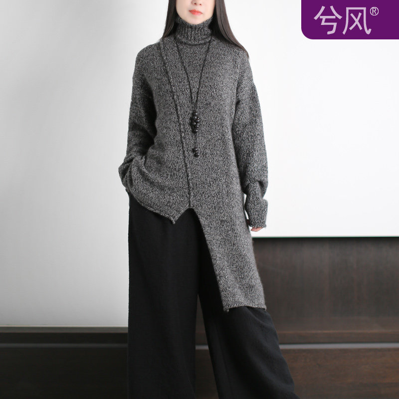 兮风高端高领羊绒毛衣设计感解构不规则中长上衣个性羊毛针织衫女