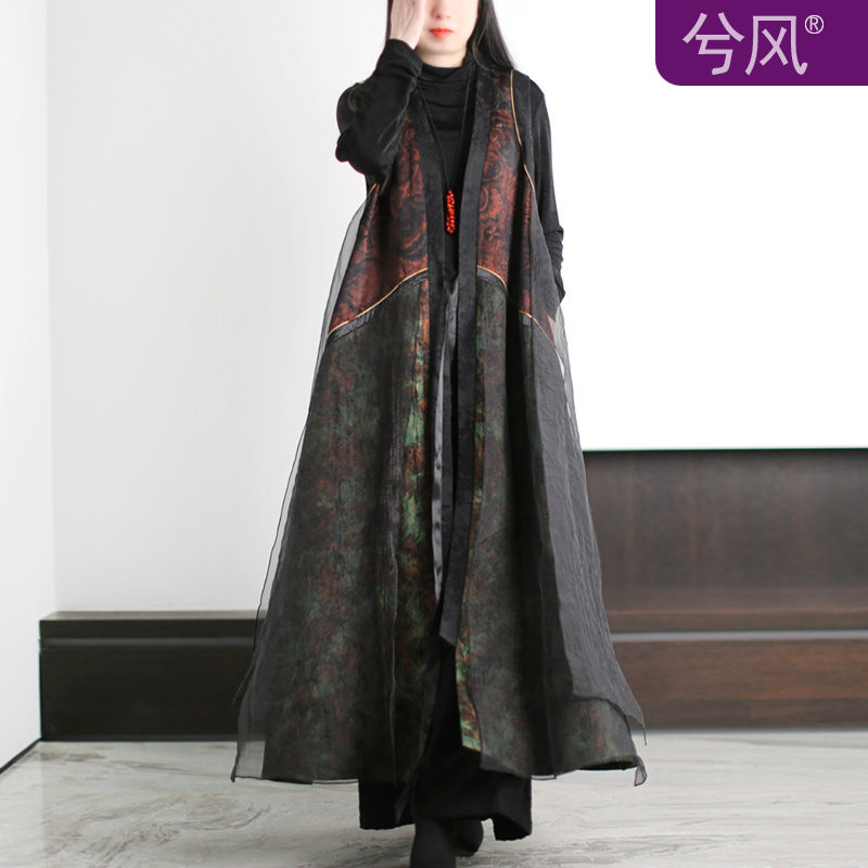 兮风高端重工民族国风长款外套个性拼接设计感优雅文艺无袖马甲秋