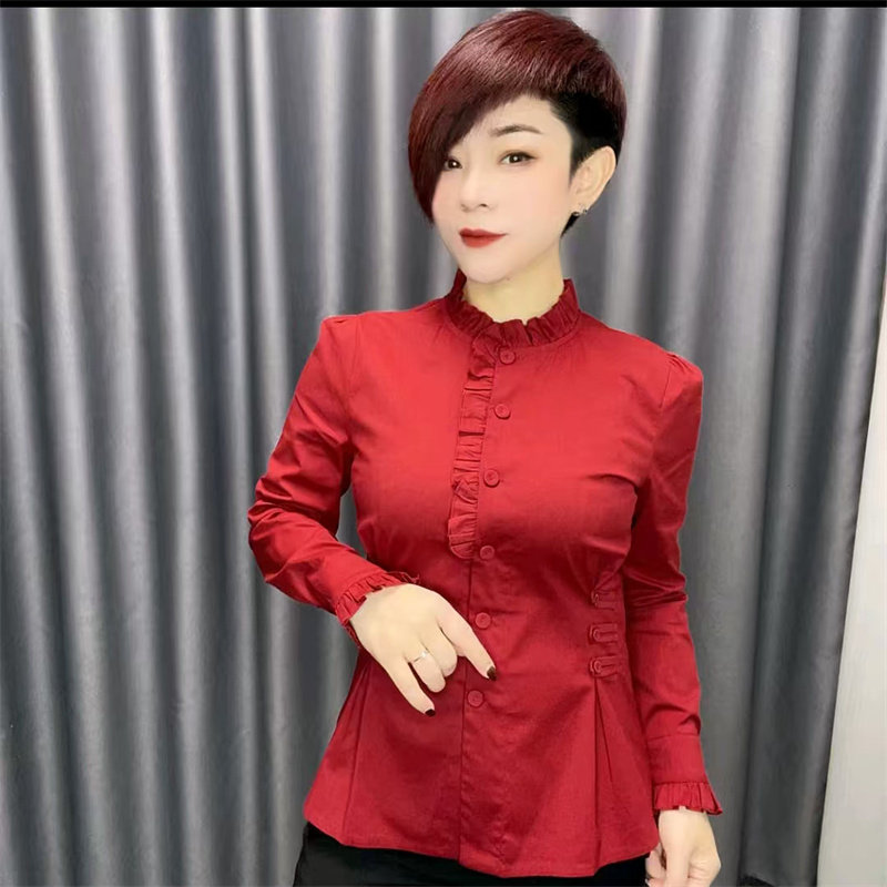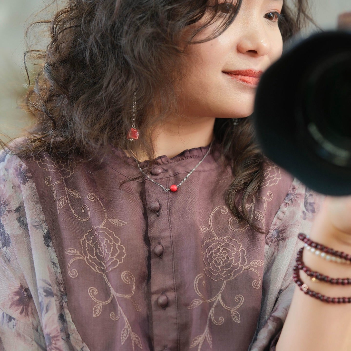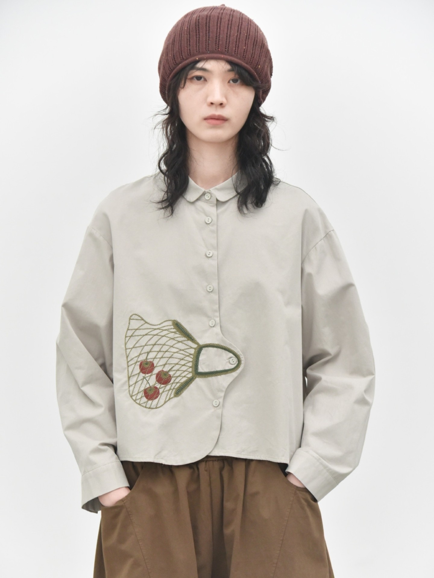 童颜阁秋冬个性刺绣复古不规则门襟设计长袖衬衫简约小众上衣女装