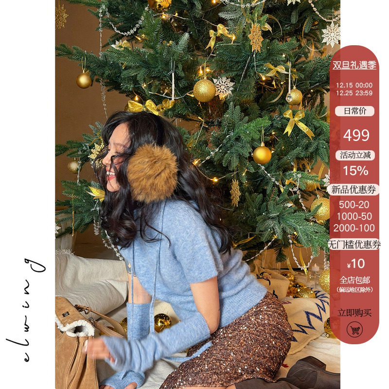 Elwing原创蓝色个性设计上衣康赛妮羊驼羊毛氛围感半高领针织衫女