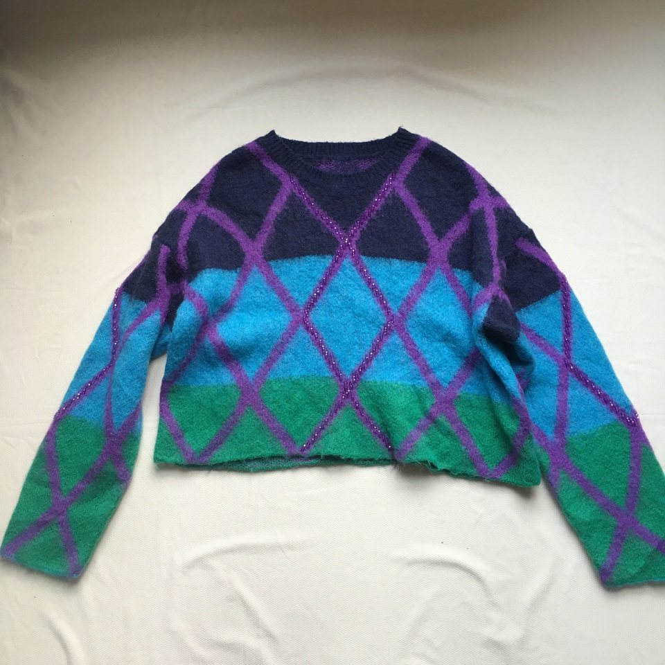 15羊毛混纺原创设计感个性菱形格纹串珠拼接精致可爱短款休闲毛衣