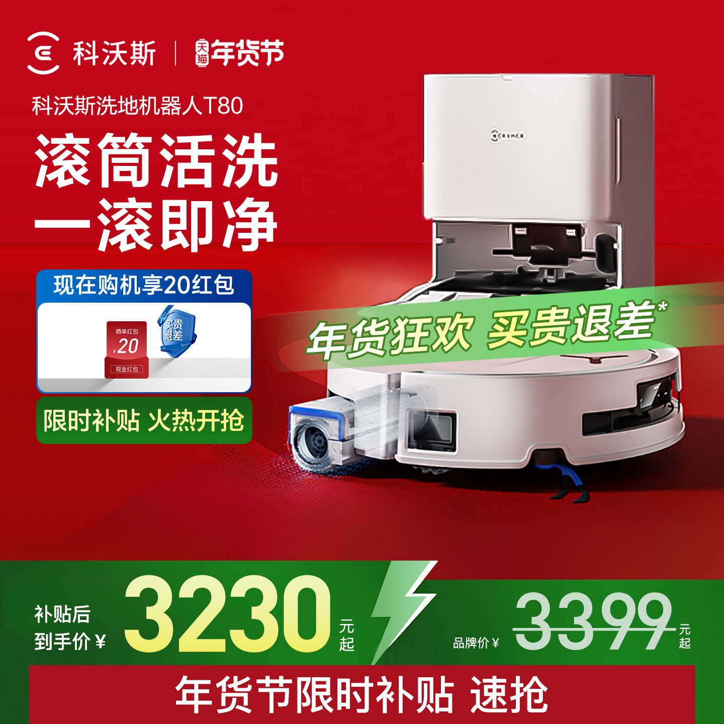 【年货节】科沃斯T80S/T80/T50PRO滚筒扫地洗地扫地机器人