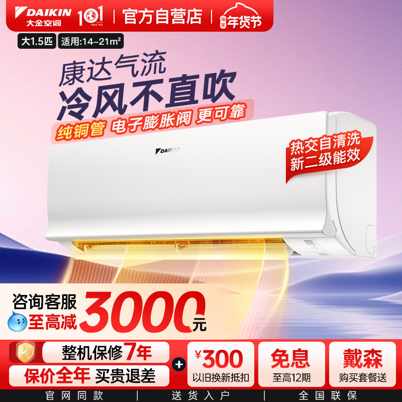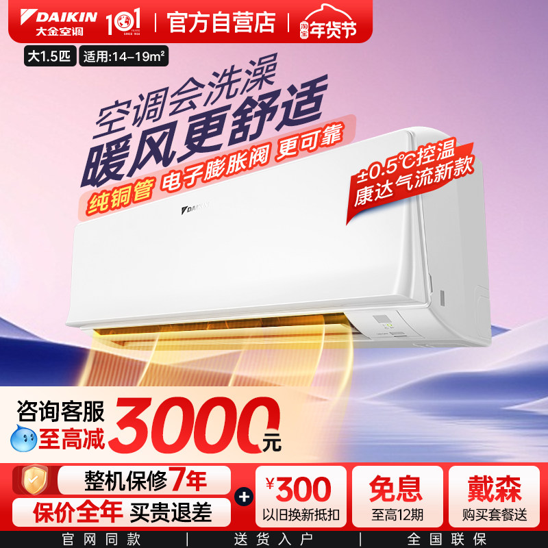 大金空调官方旗舰店挂机1P变频省电家用1.5匹冷暖卧室康达ATXS336