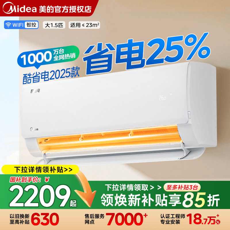 【政府补贴】美的空调酷省电大1P1.5匹一级变频冷暖家用挂机