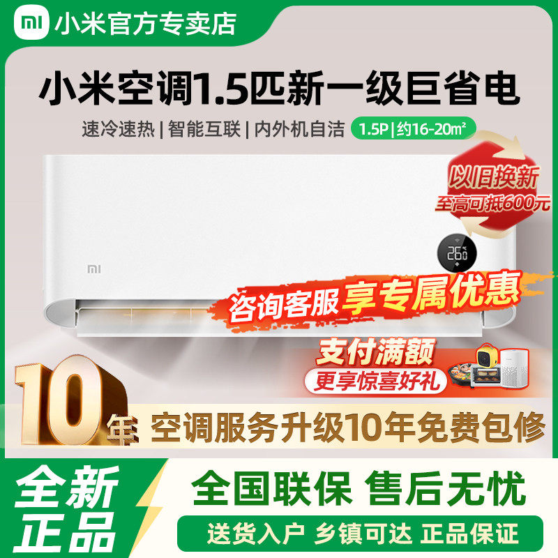 小米空调巨省电大1.5匹新一级能效1P冷暖变频节能家用卧室挂机