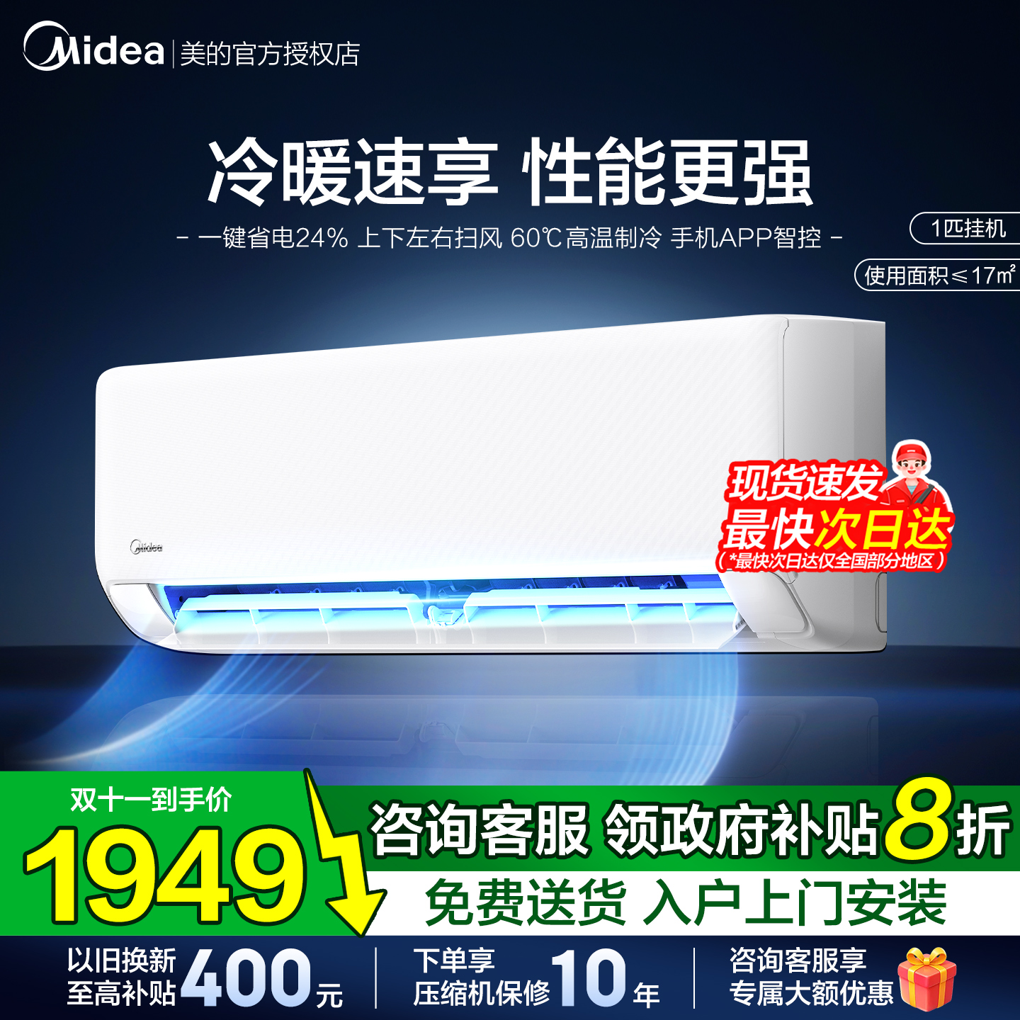 - 美的大1.5匹变频空调