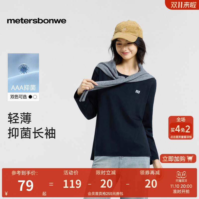 美特斯邦威T恤女2025秋新款纯棉宽松印花字母长袖体恤打底衫上衣