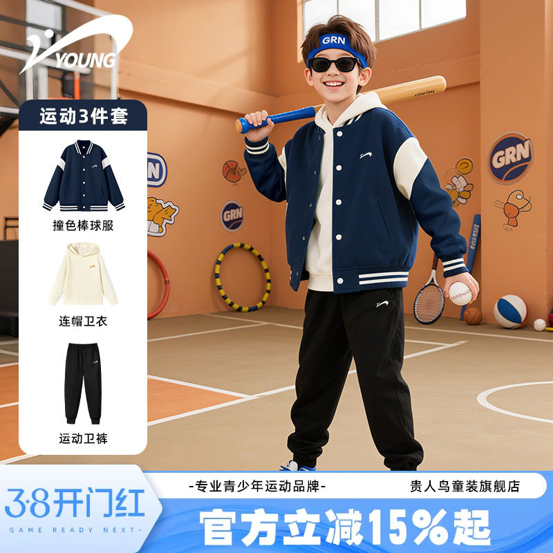 贵人鸟童装男童春装套装2026新款帅气时髦儿童棒球服大童春季外套