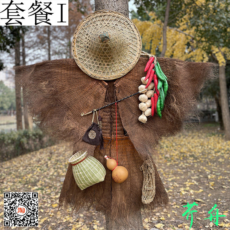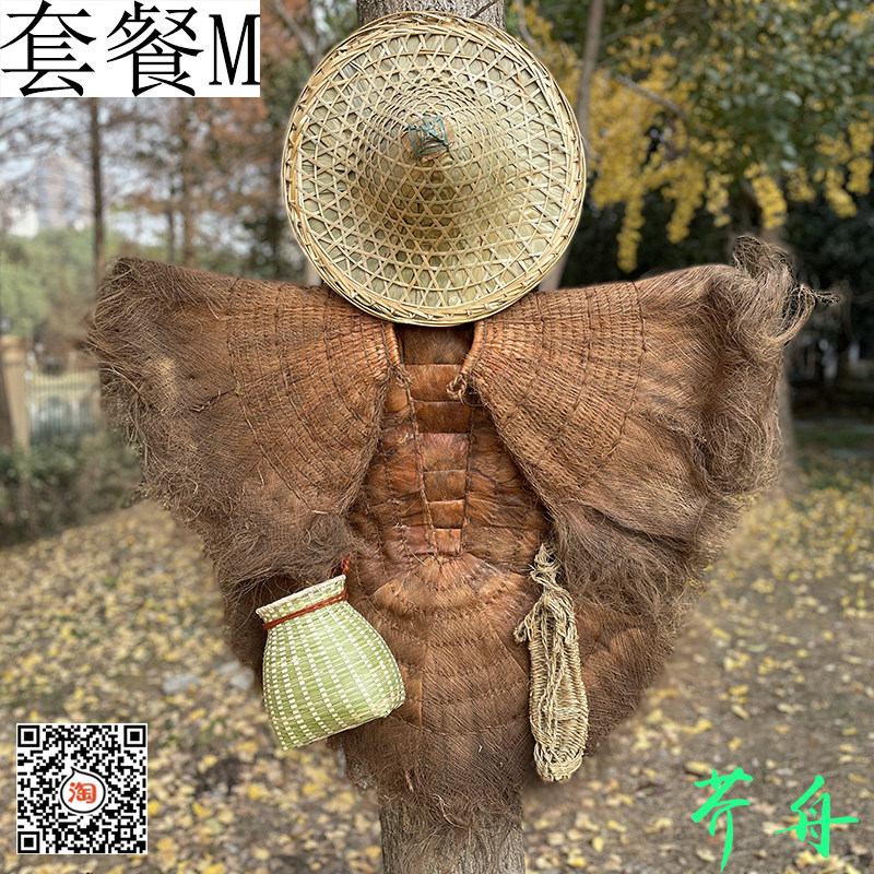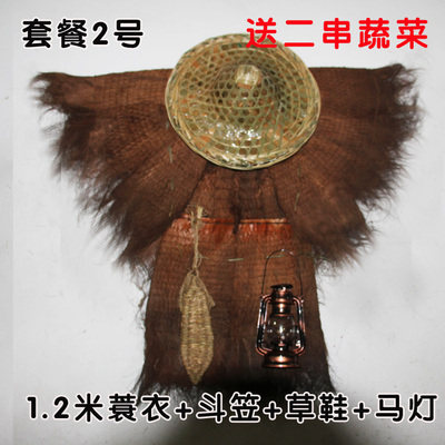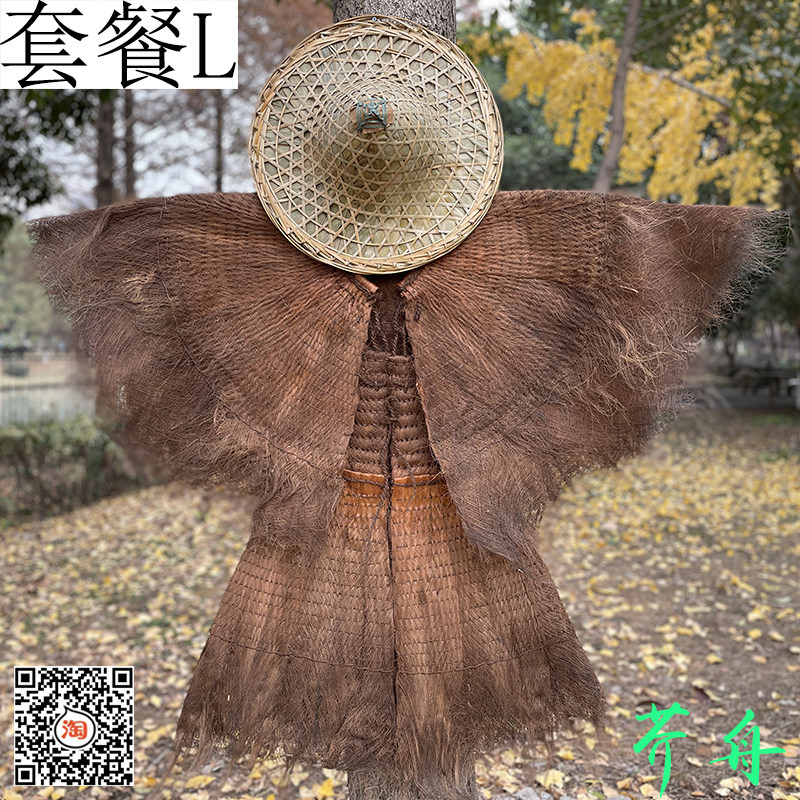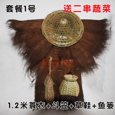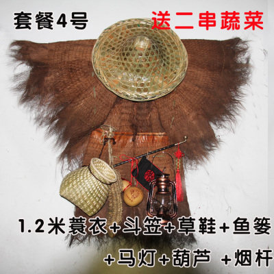蓑衣斗笠农家乐棕榈衣船夫草帽鱼篓手工雨披可穿装饰古风道具雨衣