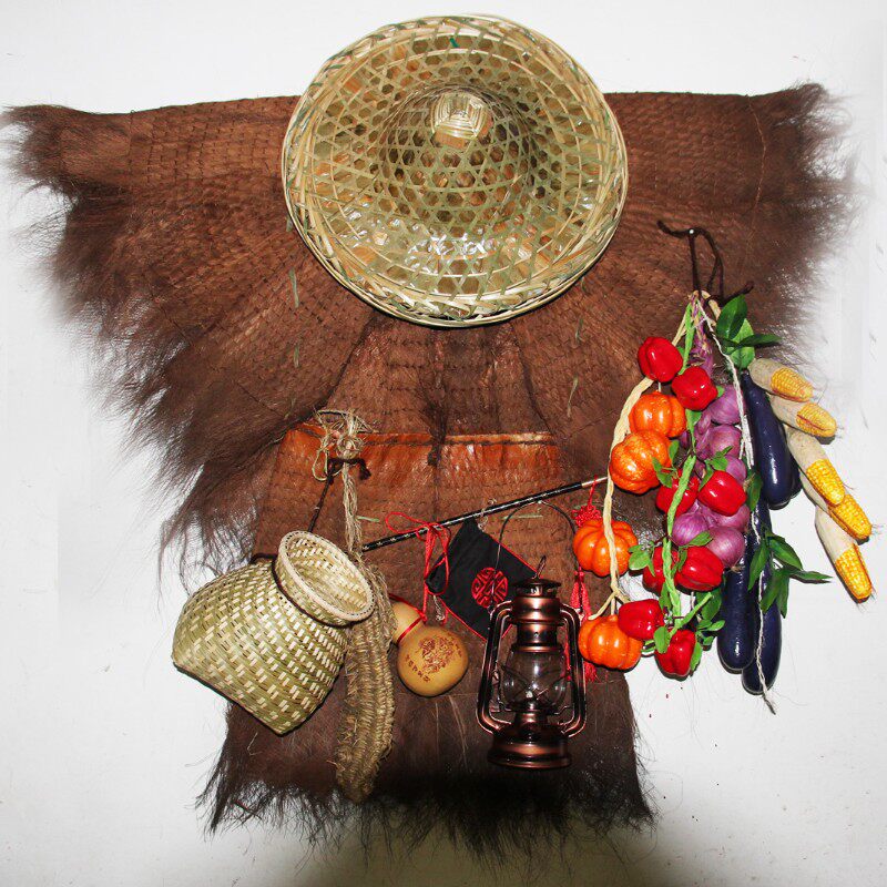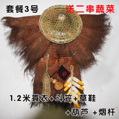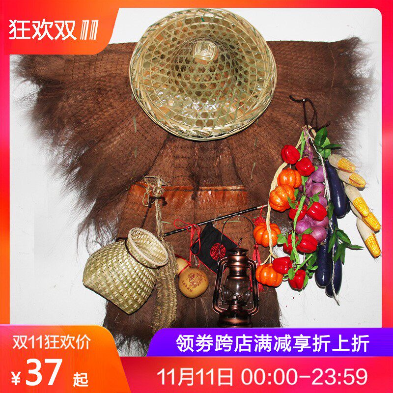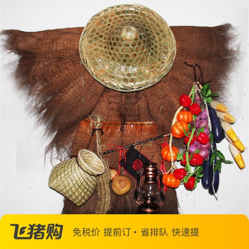 蓑衣棕榈雨披墙饰斗笠油灯草鞋手工艺挂件农家乐可穿戴复古中国风
