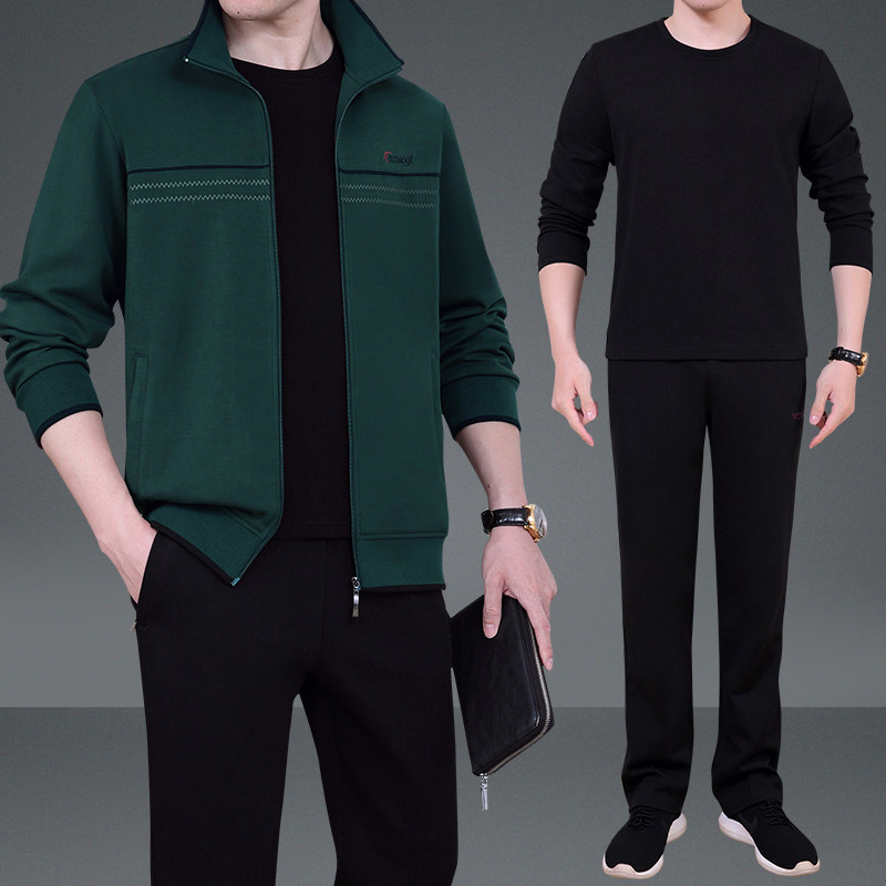 运动套装男春秋冬季外套男士休闲爸爸装三件套中老年运动服套装男