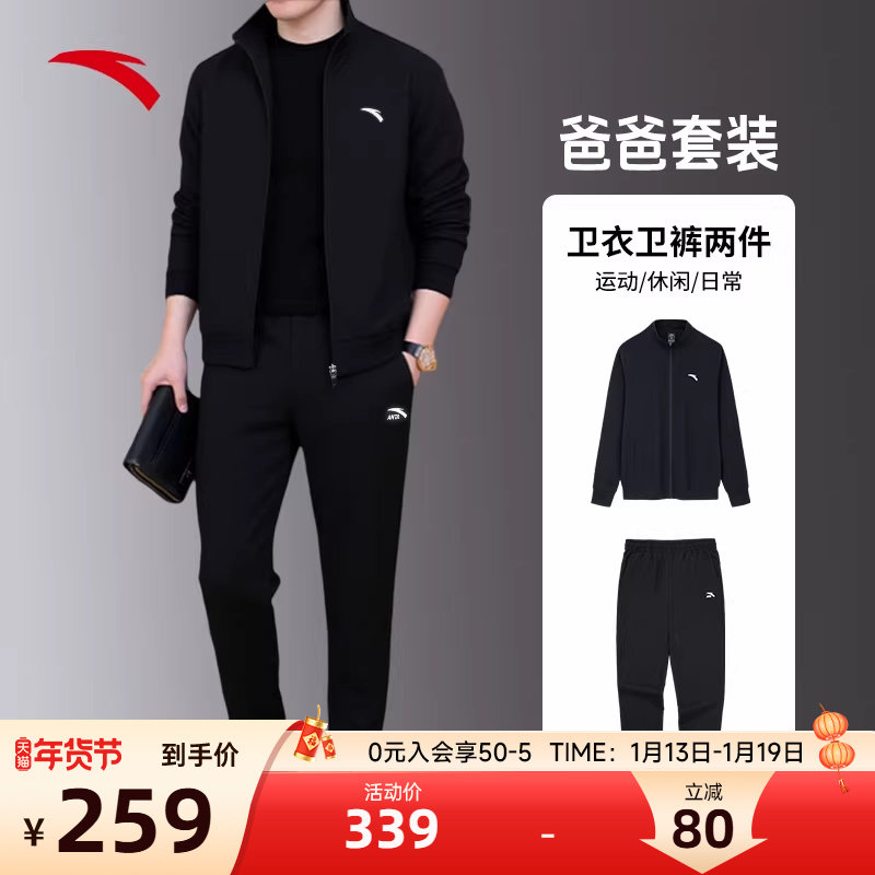 安踏爸爸运动套装中老年男士秋冬季休闲加绒外套宽松跑步运动衣服