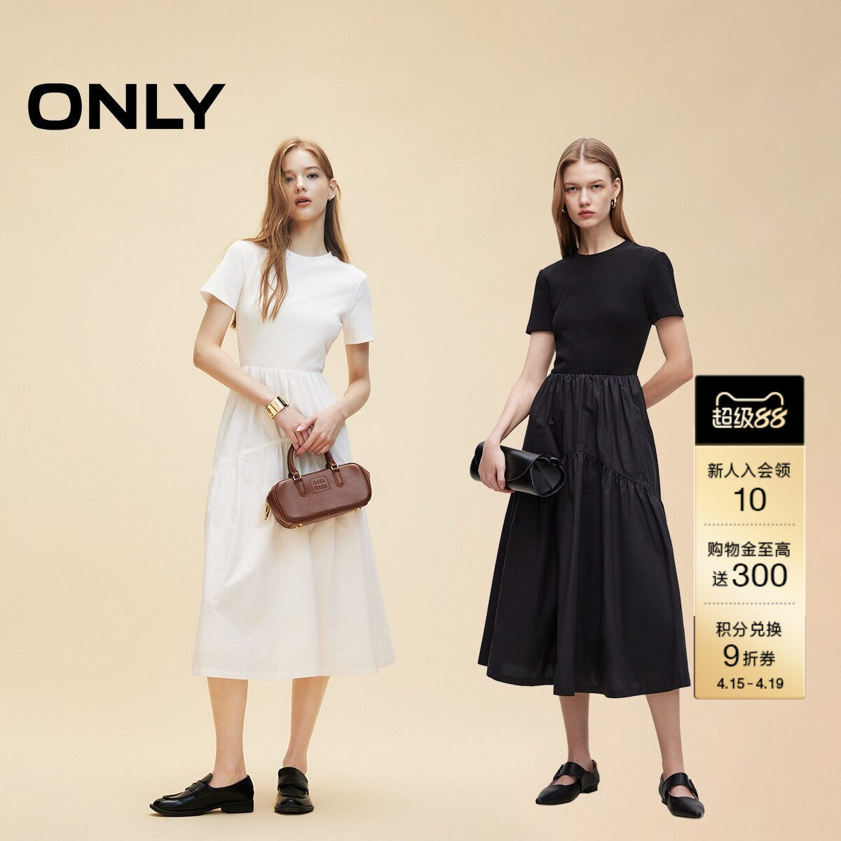 【爆款追单】ONLY2026春季新款裙子优雅长裙拼接短袖连衣裙女