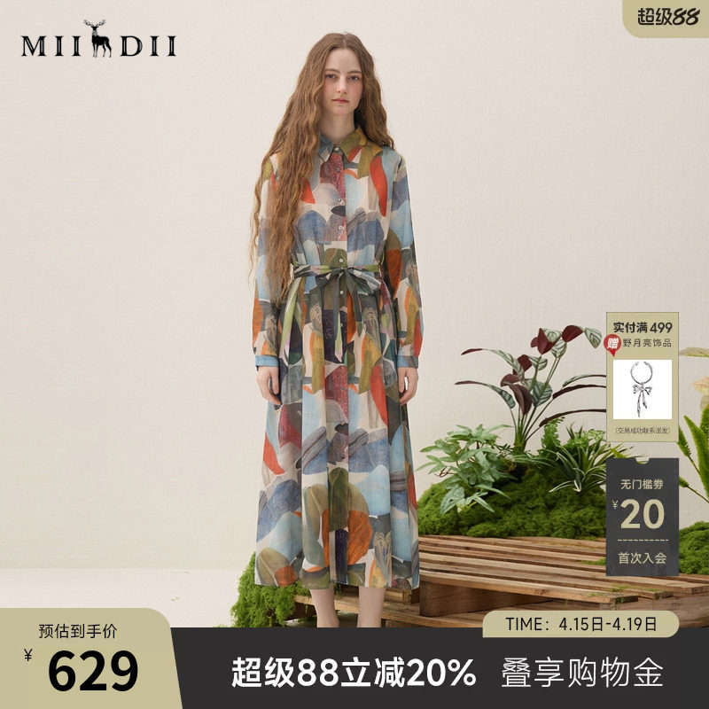 谜底纯棉连衣裙长袖2026春季新品复古原创花色A型长裙女265ML5031