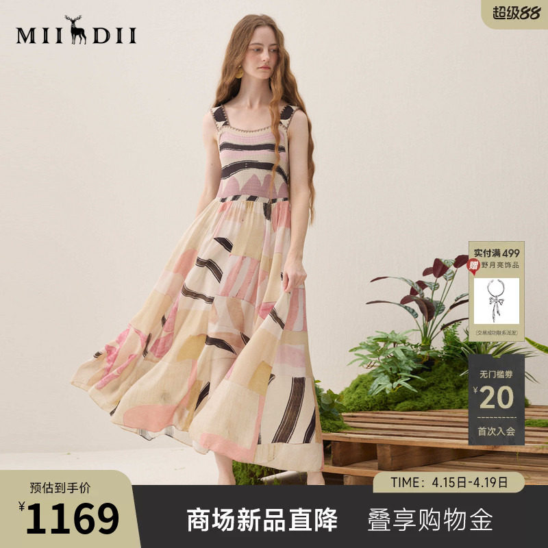 谜底连衣裙无袖2026春季新品毛织拼艺术印花大A摆长裙女261ML0238