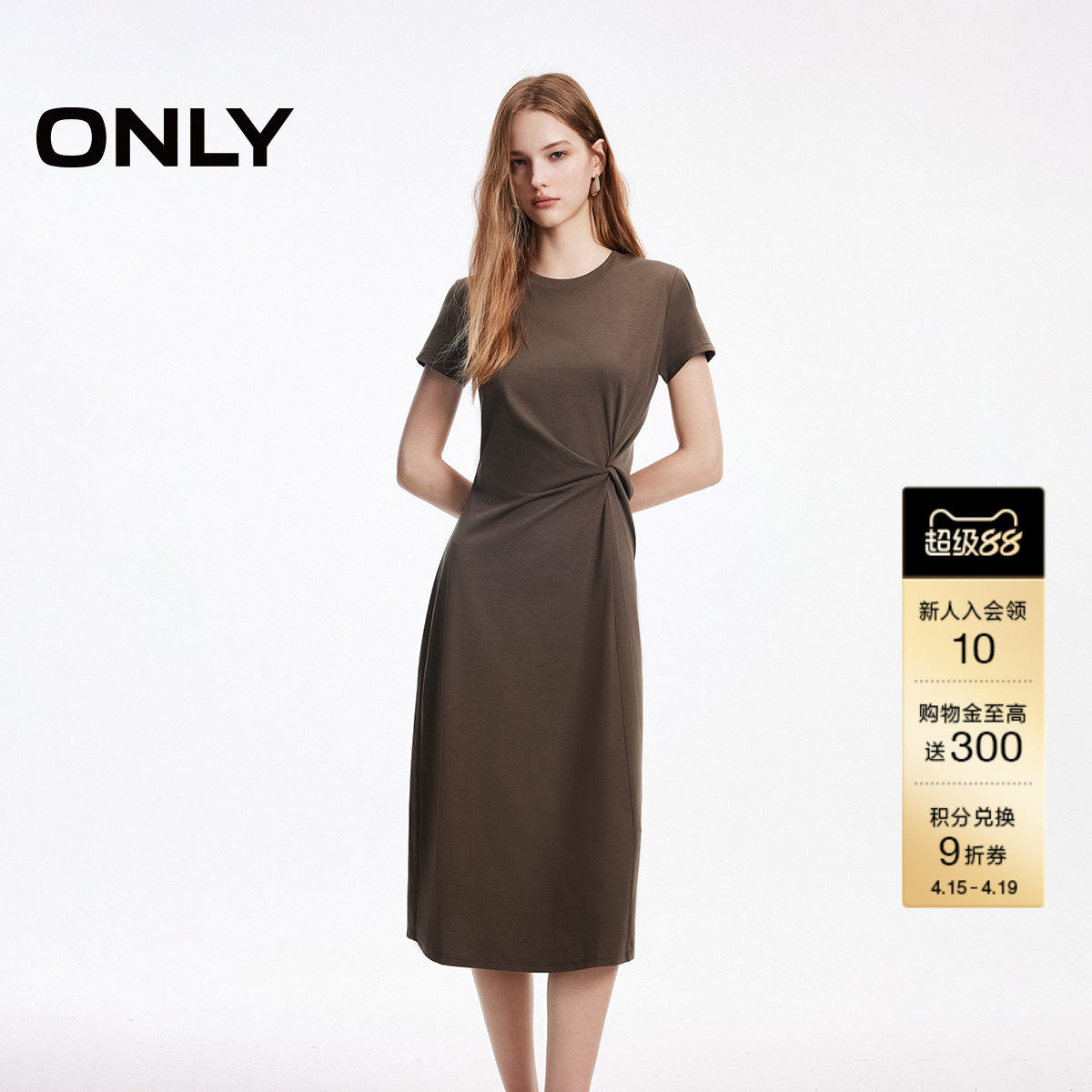 ONLY2026春季新款正肩圆领裙子纯色扭结舒适亲肤长裙连衣裙女