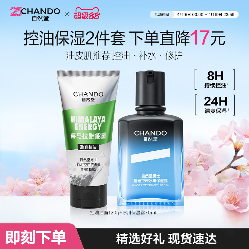 自然堂男士冰川男士保湿套装控油洁面护肤品男保湿露洗面奶学生男