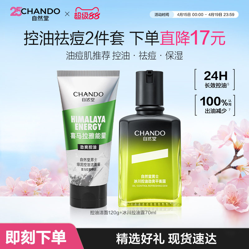 自然堂男士冰川控油露祛痘护肤套装洁面去黑头洗面奶劲爽净澈美白