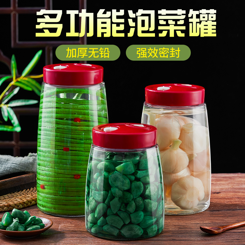 泡菜罐玻璃泡菜坛子家用自动排气腌菜罐密封瓶食品级咸菜酵素瓶子