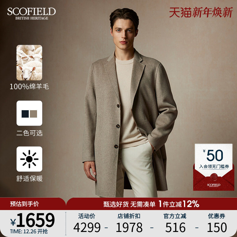 【双面呢】SCOFIELD男装秋冬新款羊毛中长款商务英伦毛呢大衣