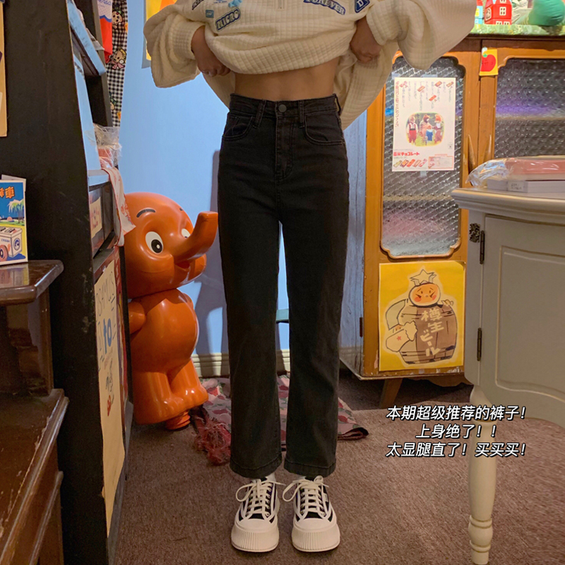 烟灰色直筒大码胖mm牛仔裤女春秋2025年新款高腰显瘦小个子烟管裤
