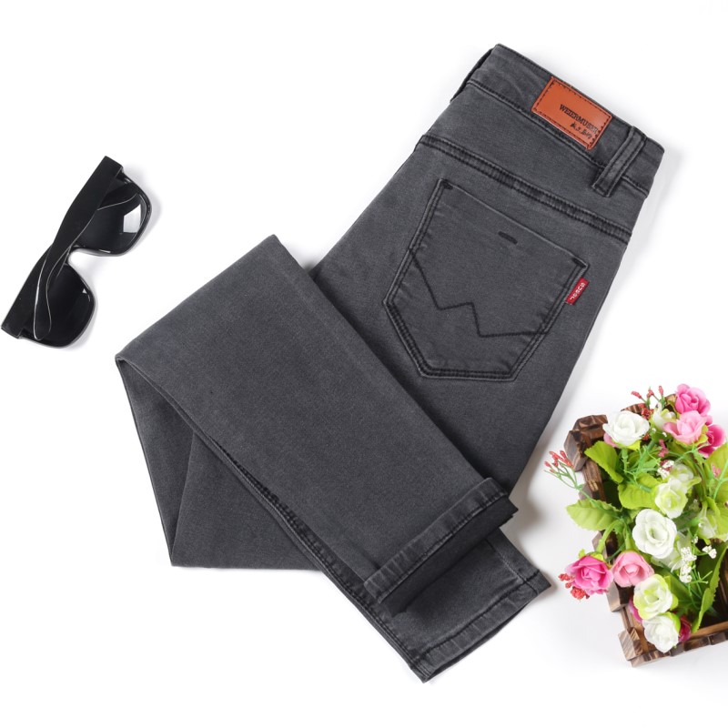 高腰大码胖mm牛仔裤女2025年春秋新款烟灰色韩版显瘦紧身小脚裤子