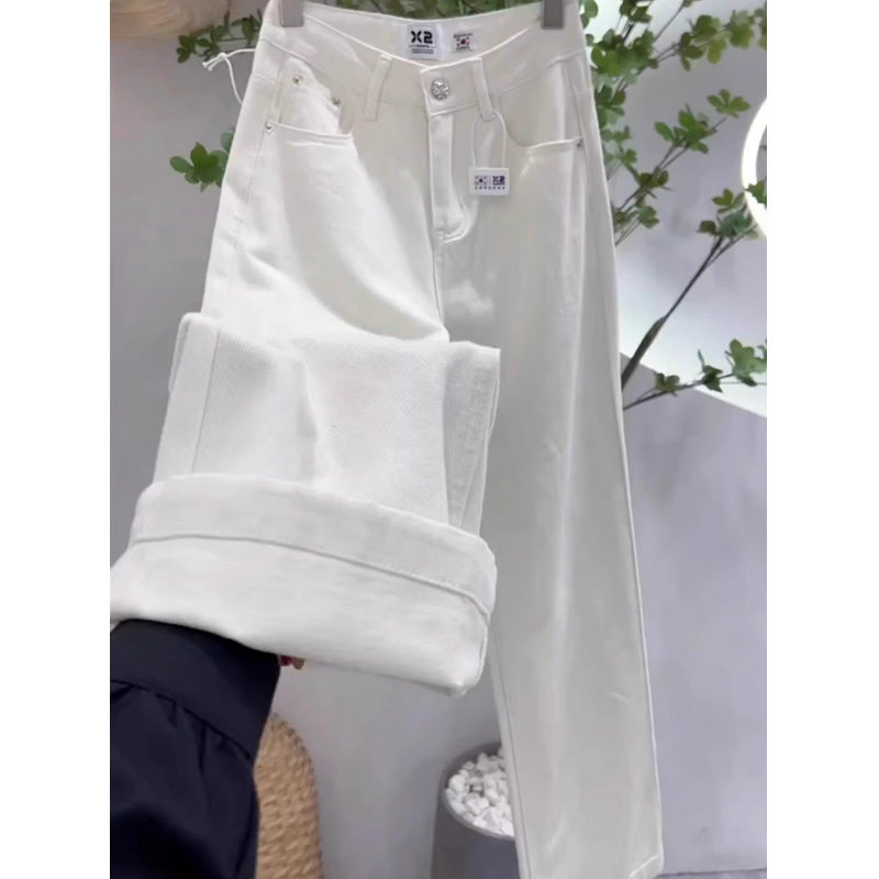 浅色直筒牛仔裤女秋冬加绒加厚大码胖mm宽松显瘦梨形身材阔腿裤子
