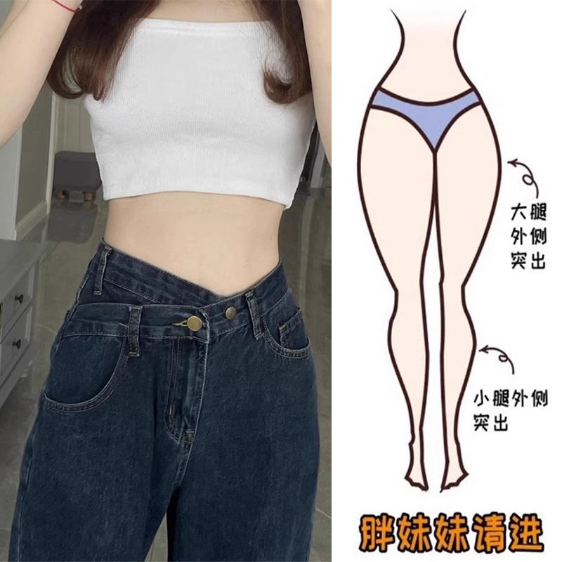 梨形身材阔腿牛仔裤女秋季新款胖mm不规则设计感高腰显瘦直筒长裤